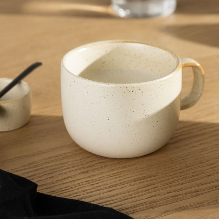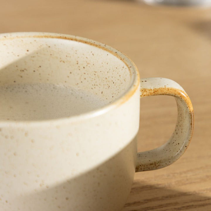 Mød Agnes koppen, kaffekoppen der kombinerer stil og komfort til det perfekte øjeblik af afslapning. Med sit unikke design i en beige nuance med små sorte prikker er Agnes koppen ikke blot en praktisk kaffekop, men også en æstetisk fornøjelse. Koppen er udstyret med et ergonomisk håndtag, der sikrer et fast og behageligt greb. Med en generøs diameter på 10 cm rummer Agnes koppen rigeligt af din yndlingskaffe eller te, så hvert øjeblik bliver en ren fornøjelse. Kryb sammen i sofaen og lad Agnes koppen blive din ledsager til afslapning. Mærk varmen fra din yndlingsdrik, og lad det smukke design tilføje et ekstra strejf til dine rolige stunder. Agnes koppen er ikke bare en kop – det er en oplevelse. Nyd hver eneste tår, og lad det elegante design løfte dine øjeblikke af afslapning. En kaffekop, der forener form og funktion og gør hvert øjeblik helt særligt.