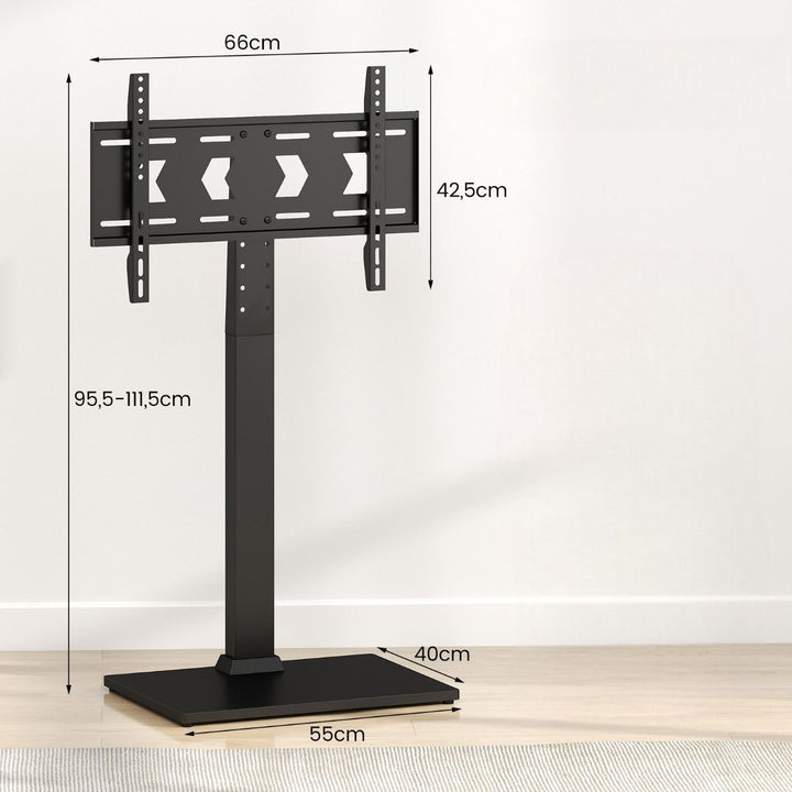 Løft din TV-oplevelse med vores universelle TV-stativ, der er egnet til 32-70 tommer TV'er. Med en maksimal VESA-kompatibilitet på 600 x 400 mm justeres det præcist til en bred vifte af TV'er. Dette TV-monteringsstativ tilbyder en højde på 95,5-111,5 cm, så du kan placere TV'et for den optimale synsvinkel. Derudover giver drejefunktionen dig friheden til at placere TV'et for den bedste synsvinkel fra enhver del af rummet.
