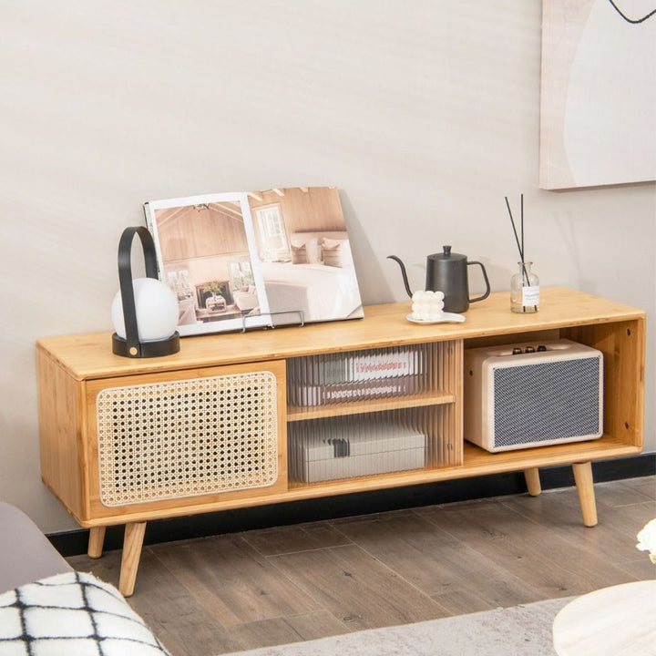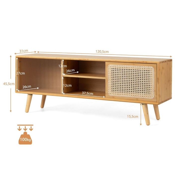 Et ideelt TV-bord skal tjene sit formål, samtidig med at det falder i ét med rummet, og dette mid-century moderne TV-konsolskab udmærker sig ved begge dele. Den brede og flade bordplade passer til de fleste fladskærms-tv'er til afslappet underholdning. Derudover tilbyder medieskabet rigelig opbevaringsplads til routere, TV-bokse, spil eller andet medietilbehør. Derudover er midterhylden højdejusterbar og har et hul til kabelhåndtering på bagsiden, så du kan placere medieenheder i forskellige størrelser på den.