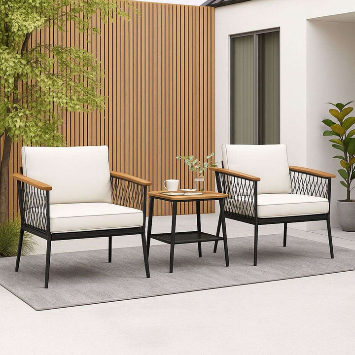 Leveringsomfang | 2 x havestole, 2 x sædehynder, 2 x ryghynder, 1 x kaffebord, 1 x brugermanual |